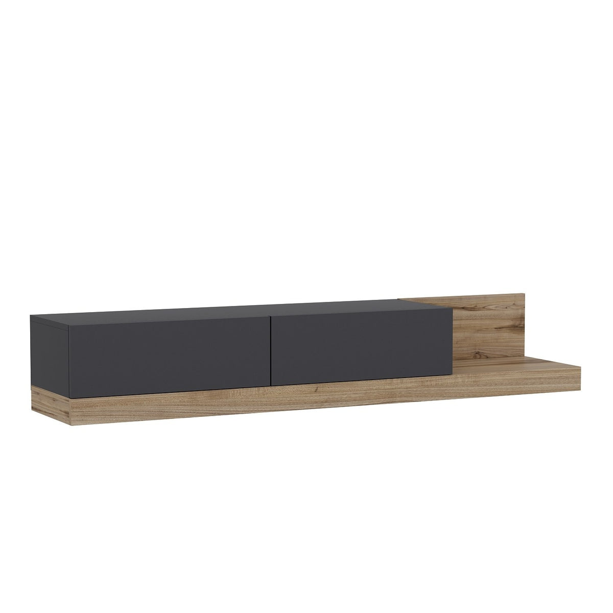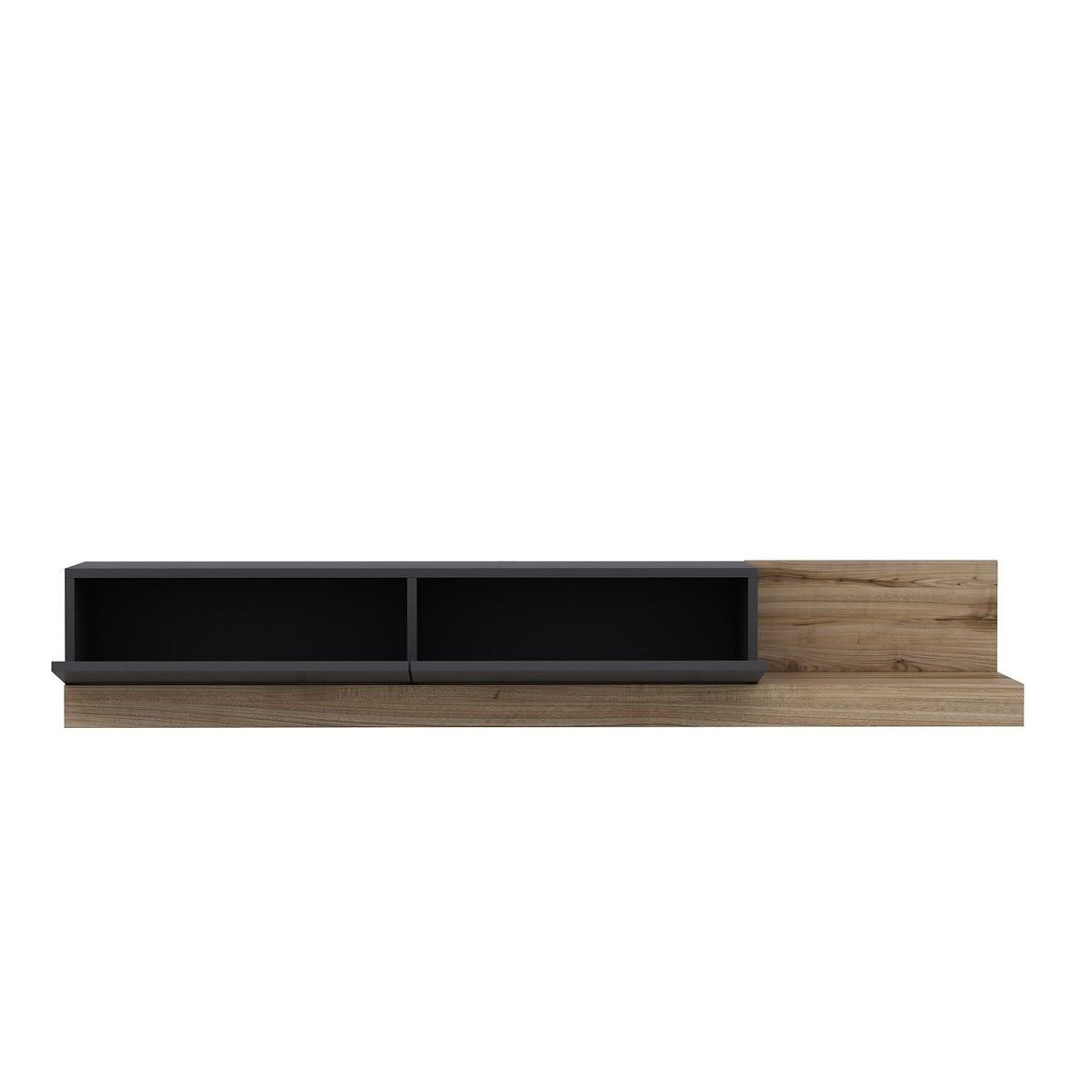 Le meuble TV présente un design épuré et contemporain qui s'intègre sans effort à tout décor intérieur. La combinaison des couleurs anthracite et noyer ajoute une touche de sophistication, ce qui en fait une pièce remarquable dans votre salon.