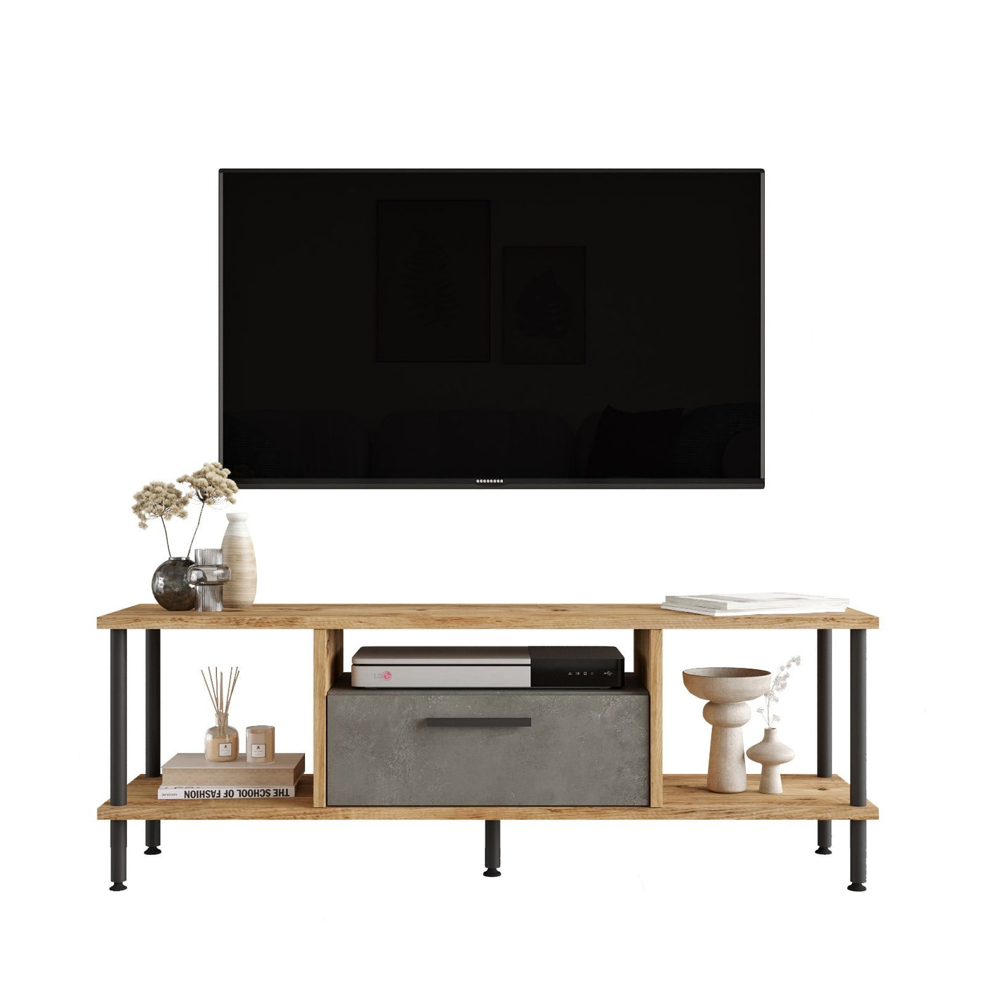 Fabriqué à partir de panneaux de particules 100% mélaminés, ce meuble TV présente un aspect élégant et sophistiqué qui rehaussera instantanément le décor de votre maison. La combinaison de couleurs Pin Atlantique et Gris ajoute une touche d'élégance, ce qui en fait un meuble parfait pour tout style d'intérieur.