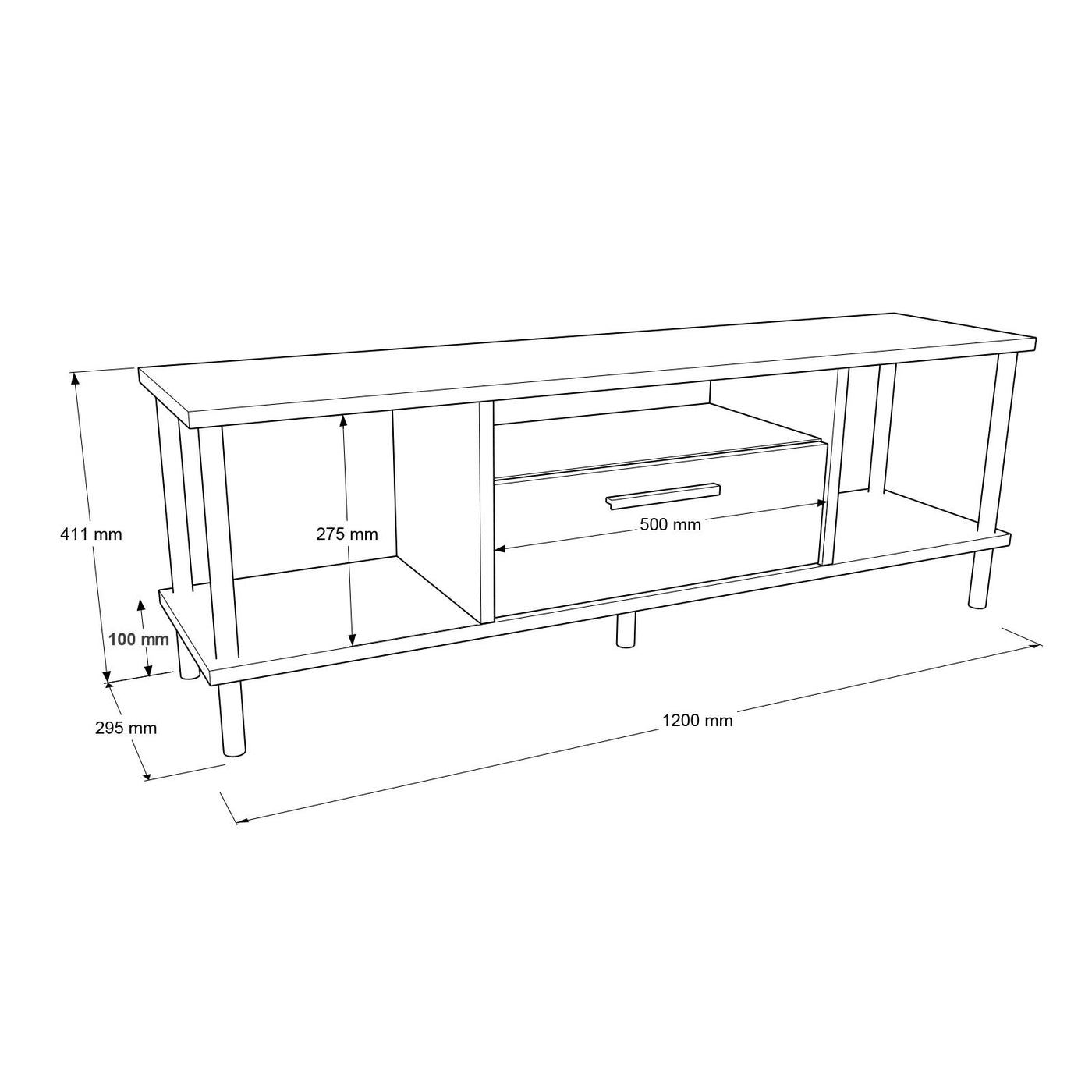 Avec une largeur de 120 cm, une hauteur de 41,1 cm et une profondeur de 29,5 cm, ce meuble TV offre un vaste espace de rangement pour tous vos accessoires de divertissement. Qu'il s'agisse de vos consoles de jeux, de votre collection de DVD ou de votre système audio, vous pouvez tout garder organisé et à portée de main.