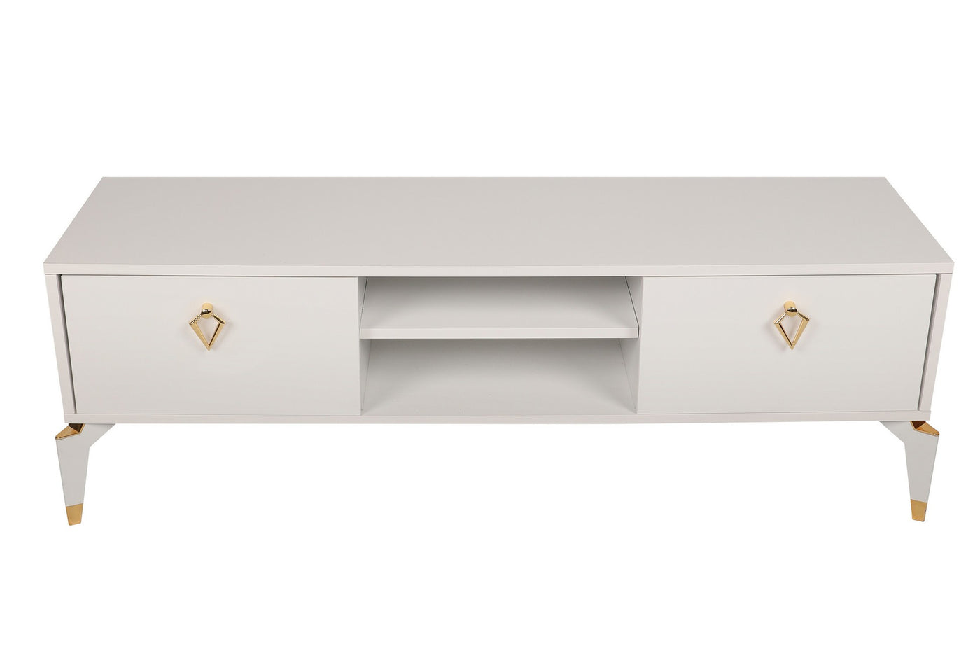 Carte de particules à revêtement en mélamine 100%Épaisseur: 18 mmPattes en plastiqueLargeur: 143 cm Hauteur: 47 cm de profondeur: 40 cmHauteur de la jambe: 19 cmDe nombreuses étagères