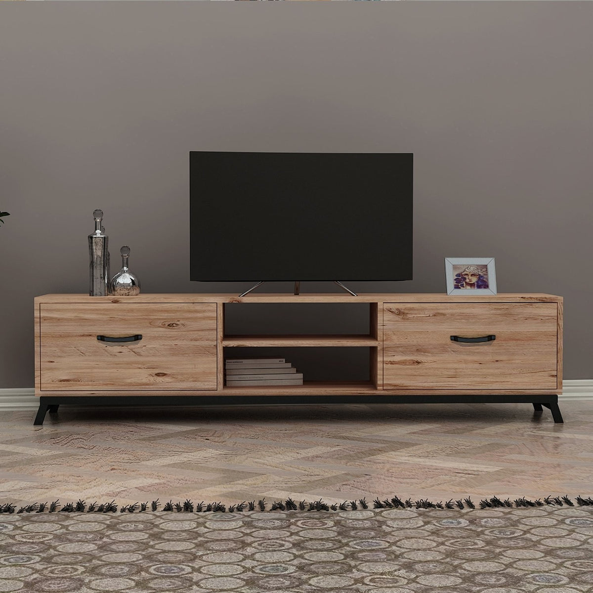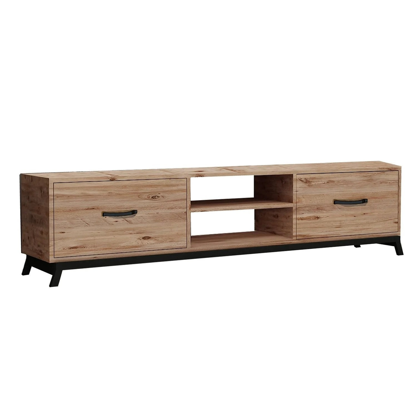 Fabriqué à partir de panneaux de particules 100% mélaminés, ce meuble TV est conçu pour durer. L'épaisseur de 18 mm garantit la solidité et la durabilité, tandis que les pieds en métal ajoutent une touche de modernité au design général. La combinaison des couleurs pin atlantique et noir crée un contraste visuellement attrayant qui s'intégrera à n'importe quel décor.