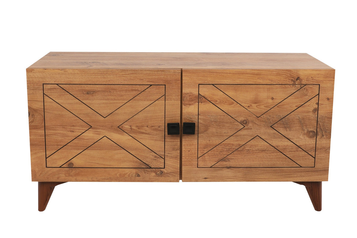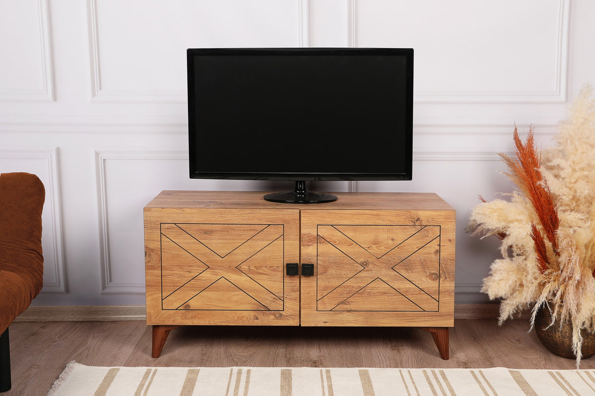 Avec sa finition couleur pin, ce meuble TV dégage un charme rustique qui crée instantanément une atmosphère accueillante. Les motifs de bois naturels et les détails en relief lui confèrent un attrait unique et intemporel, ce qui en fait un complément parfait pour tout salon.