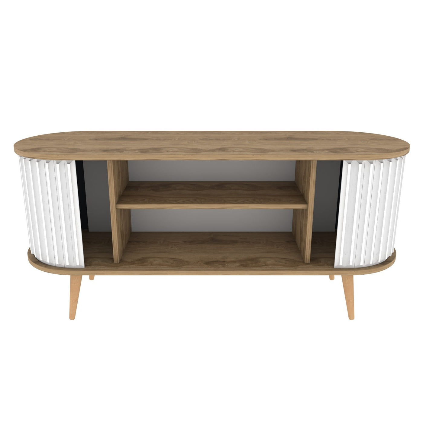 Avec une épaisseur de 18 mm, ce meuble TV est conçu pour supporter le poids de votre téléviseur et d'autres appareils multimédia. Ses dimensions spacieuses de 140 cm de largeur, 43 cm de profondeur et 64 cm de hauteur offrent un vaste espace de rangement pour vos consoles de jeux, DVD et autres accessoires de divertissement.