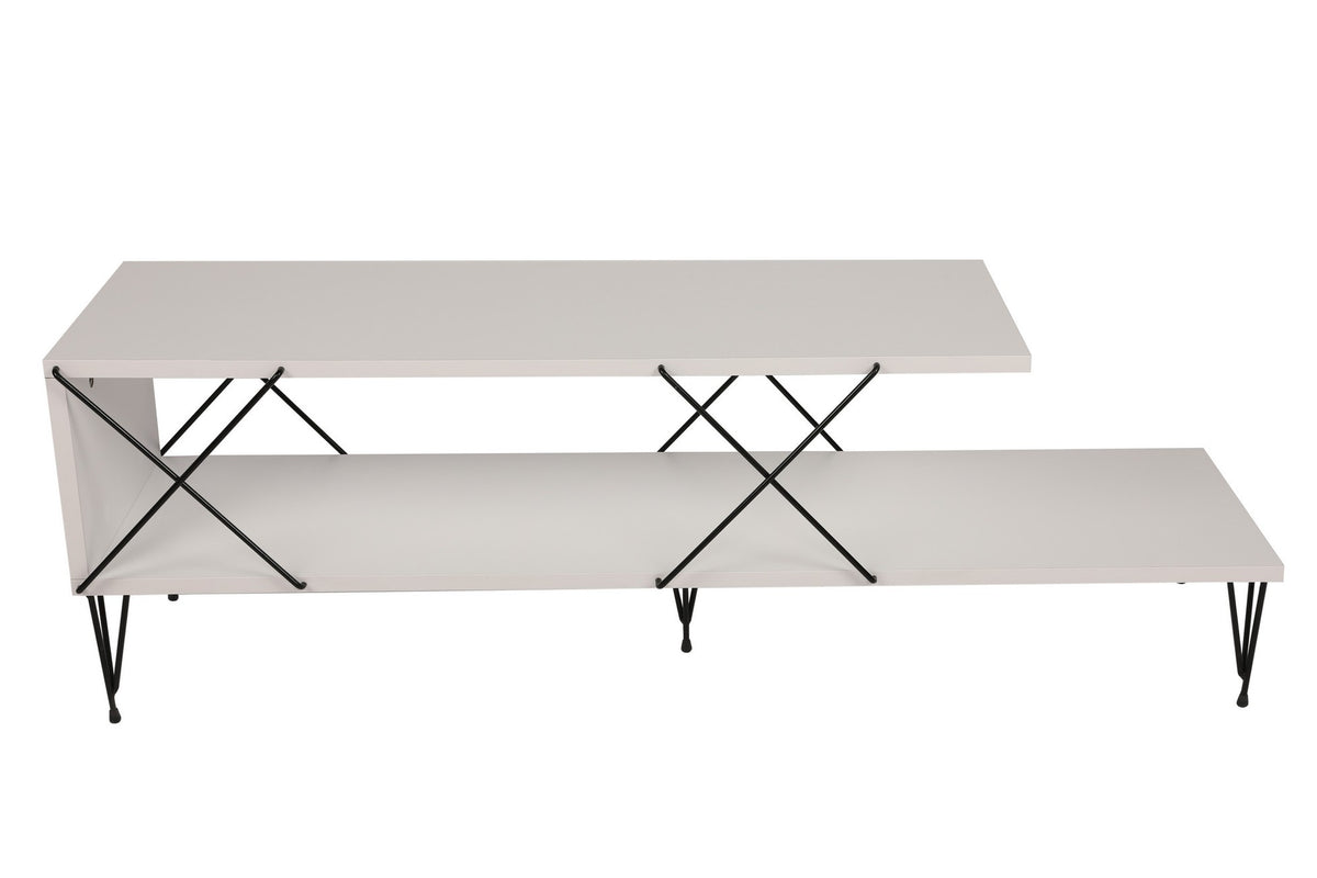 Fabriqué à partir de panneaux de particules 100% mélaminés, notre meuble TV n'est pas seulement durable, il ajoute également une touche d'élégance à n'importe quelle pièce. La couleur blanche élégante s'harmonise avec tous les décors, ce qui en fait un choix polyvalent pour n'importe quelle maison.