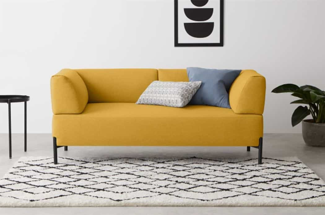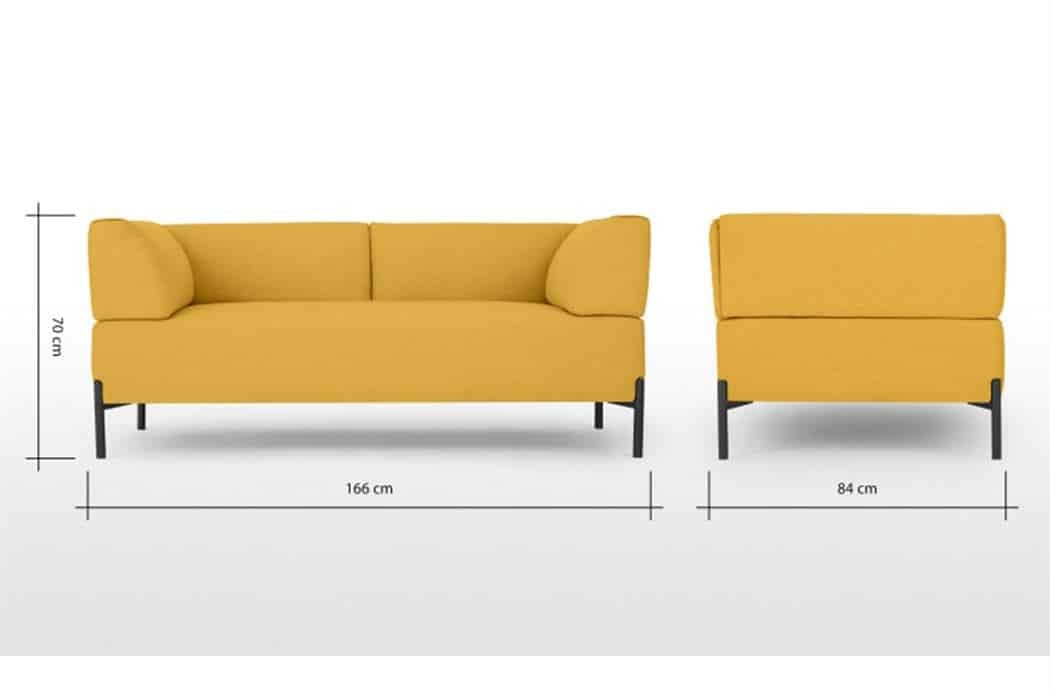 Osaka Canapé fixe 2 places en tissu avec pieds épingles Jaune