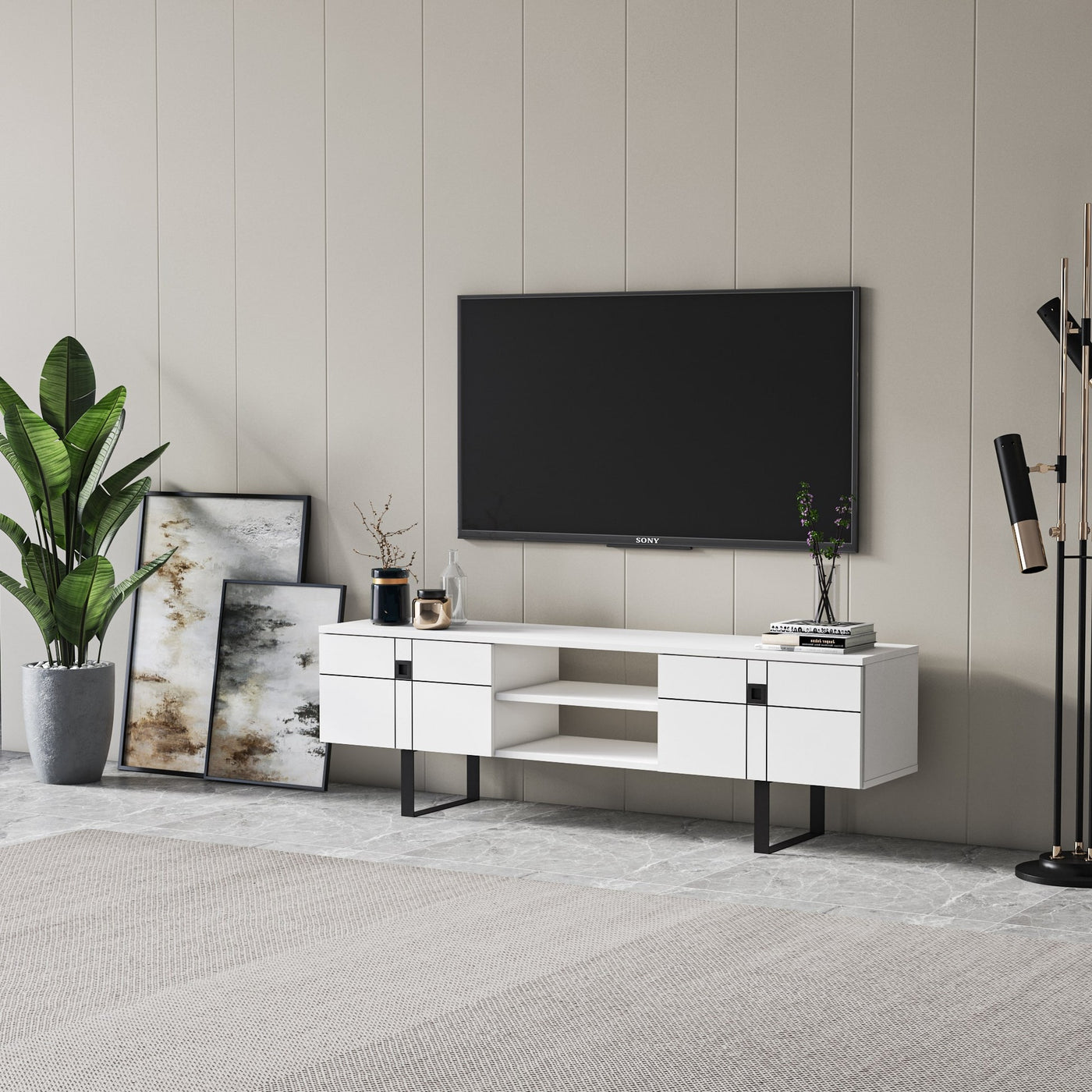 Panneau de particules revêtu à 100% de mélamine Épaisseur : 18 mm Pieds en métal Portes à fermeture douce Gestion...