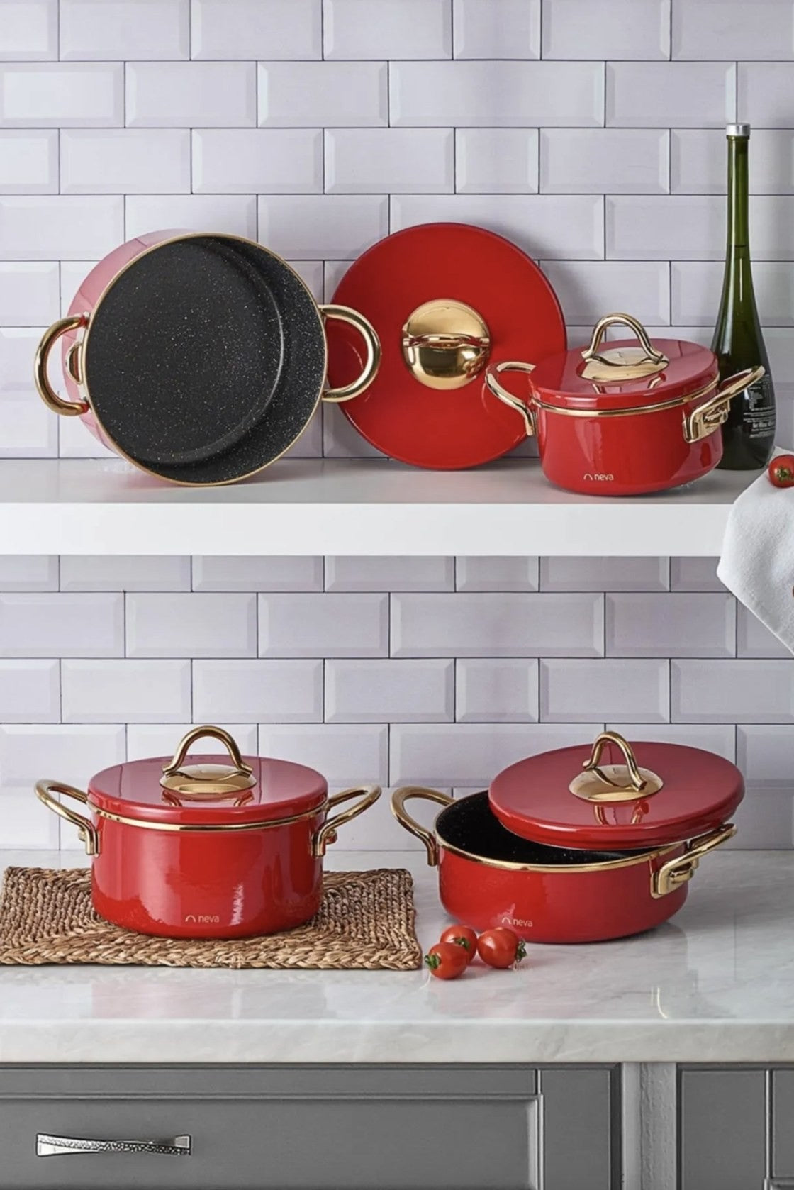 Émail et granit brillantTaille: 24 cm / 3,1 (1 pièce)Couvercle: 24 cm (1 pièce)Taille: 24 cm / 5 lt (1...
