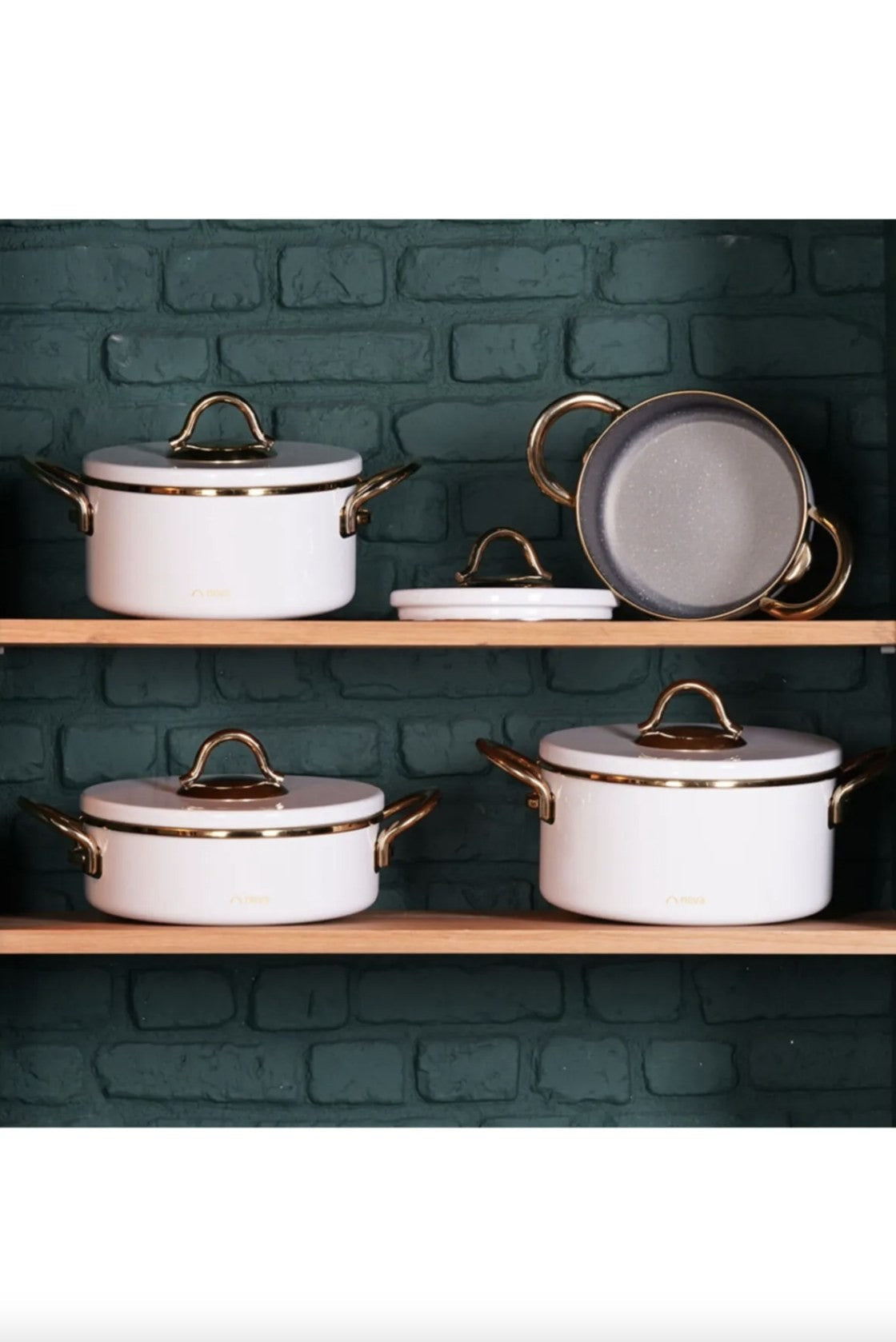 La finition brillante en émail et en granit ajoute non seulement une touche de sophistication à votre cuisine, mais garantit également que ces casseroles sont résistantes aux rayures et aux taches. La couleur blanche élégante s'harmonise avec tous les décors de cuisine, ce qui en fait un complément parfait à votre arsenal culinaire.