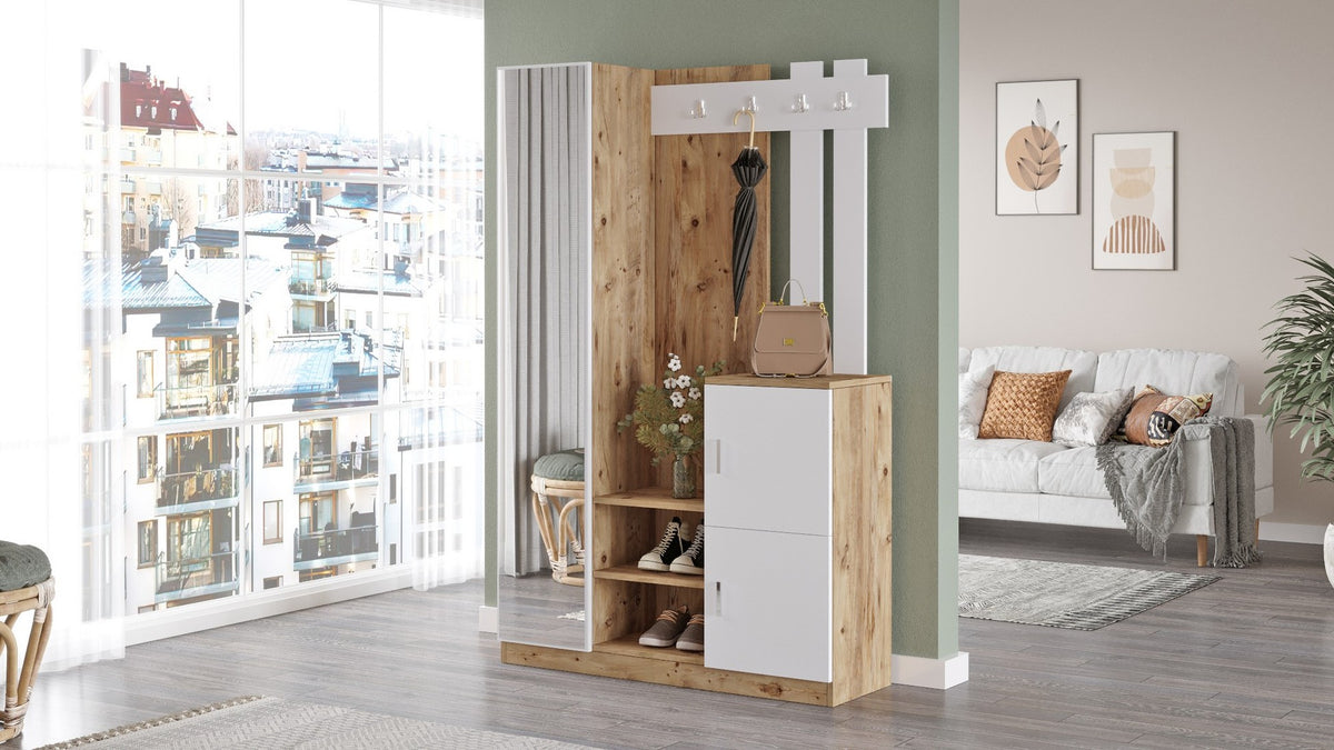 Le meuble Hall Stand n'est pas seulement un meuble, c'est une déclaration. Son design épuré et contemporain transformera instantanément votre entrée en un espace chaleureux et accueillant. La combinaison des couleurs Pin Atlantique et Blanc ajoute une touche d'élégance et de sophistication à tout décor.