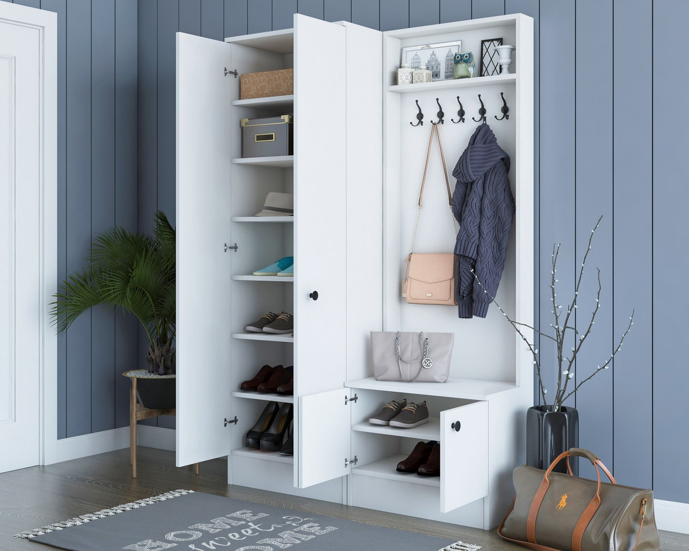 Accueillez vos invités avec style grâce à notre superbe meuble d'entrée. Fabriqué avec la plus grande précision, ce meuble est conçu pour ajouter une touche de sophistication à votre entrée. Avec son concept scandinave moderne et élégant, il se fond sans effort dans n'importe quel décor, créant une atmosphère chaleureuse et accueillante.