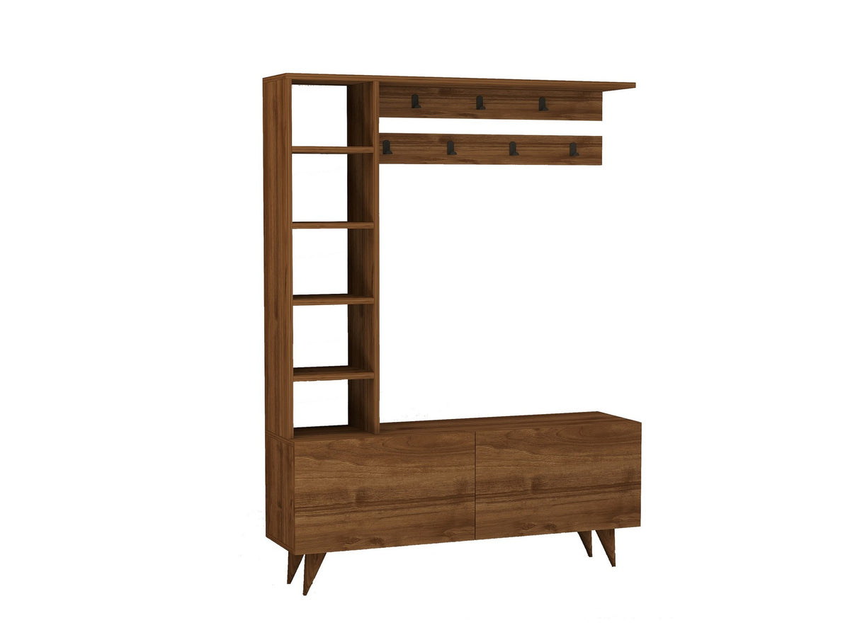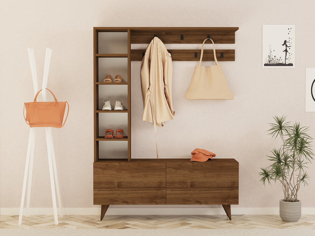 Avec son design épuré et sa couleur noyer, ce meuble d'entrée s'intègre sans effort dans n'importe quel décor intérieur. Ses étagères spacieuses offrent un grand espace de rangement pour vos objets de tous les jours, tandis que la surface supérieure est parfaite pour exposer vos objets de décoration préférés. Gardez vos clés, votre courrier et d'autres objets organisés et facilement accessibles.