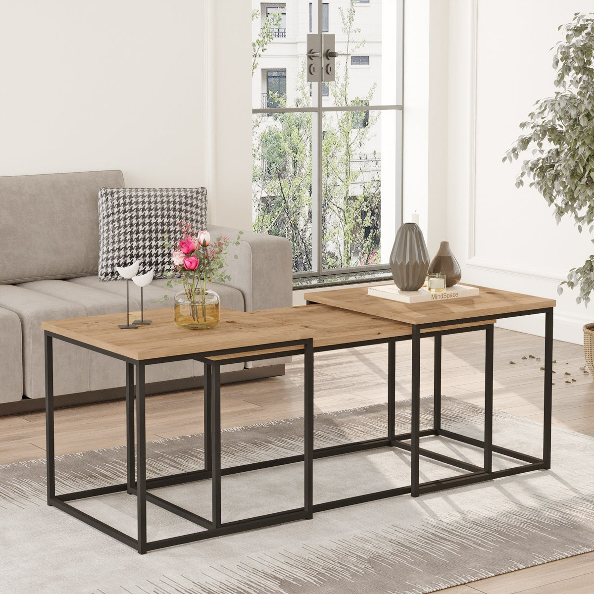 Composée de deux pièces de 50 cm de largeur, 47,8 cm de hauteur et 50 cm de profondeur, et d'une pièce de 90 cm de largeur, 44,8 cm de hauteur et 45 cm de profondeur, cette table basse offre suffisamment d'espace pour répondre à tous vos besoins. Qu'il s'agisse d'exposer vos livres préférés, vos magazines ou des objets décoratifs, cette table constitue la plateforme parfaite pour mettre en valeur votre style personnel.
