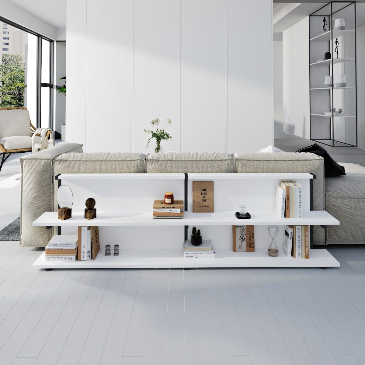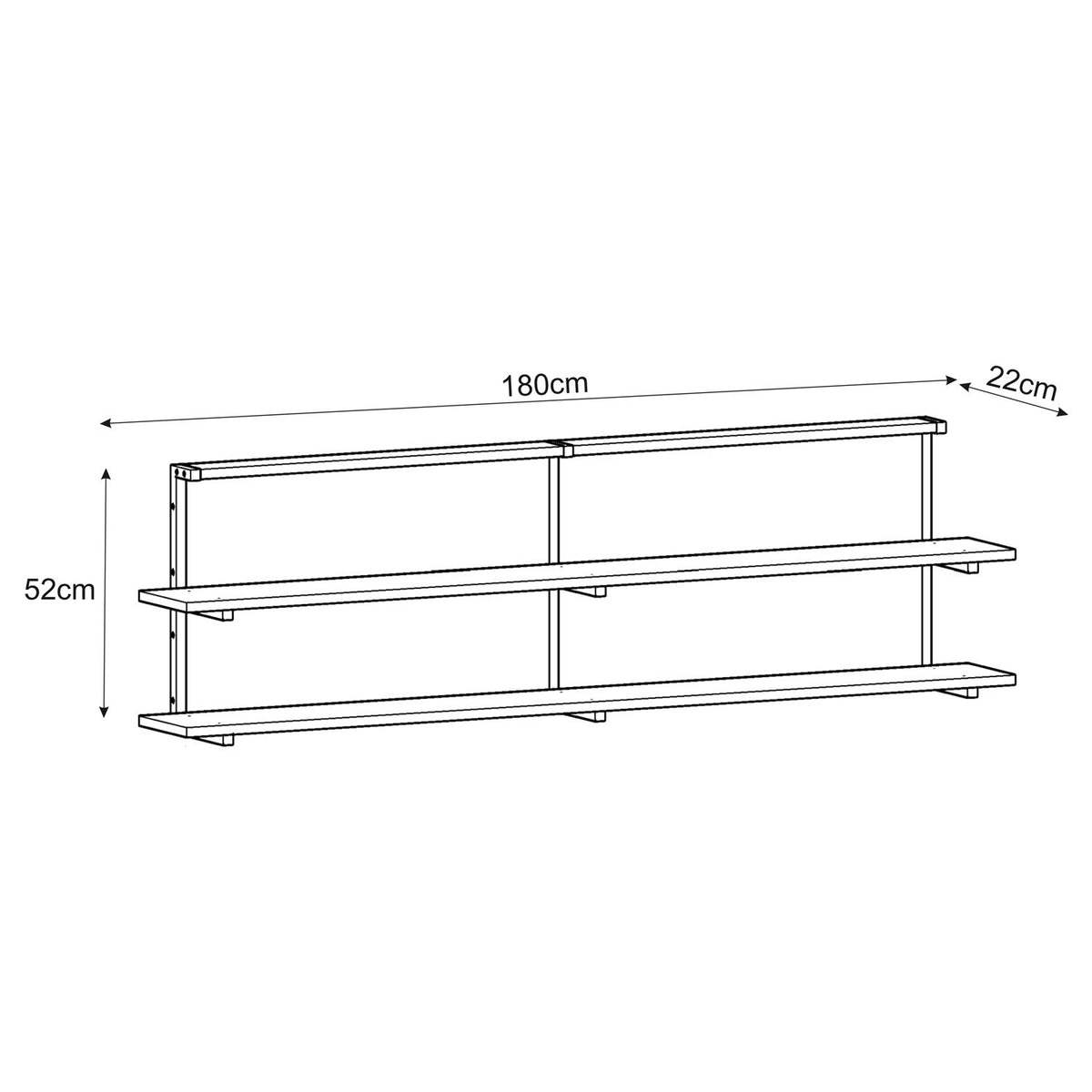 100% panneau de particules enrobés de mélamine et métalÉpaisseur: 18 mmLargeur: 180 cm Hauteur: 52 cm de profondeur: 22 cm