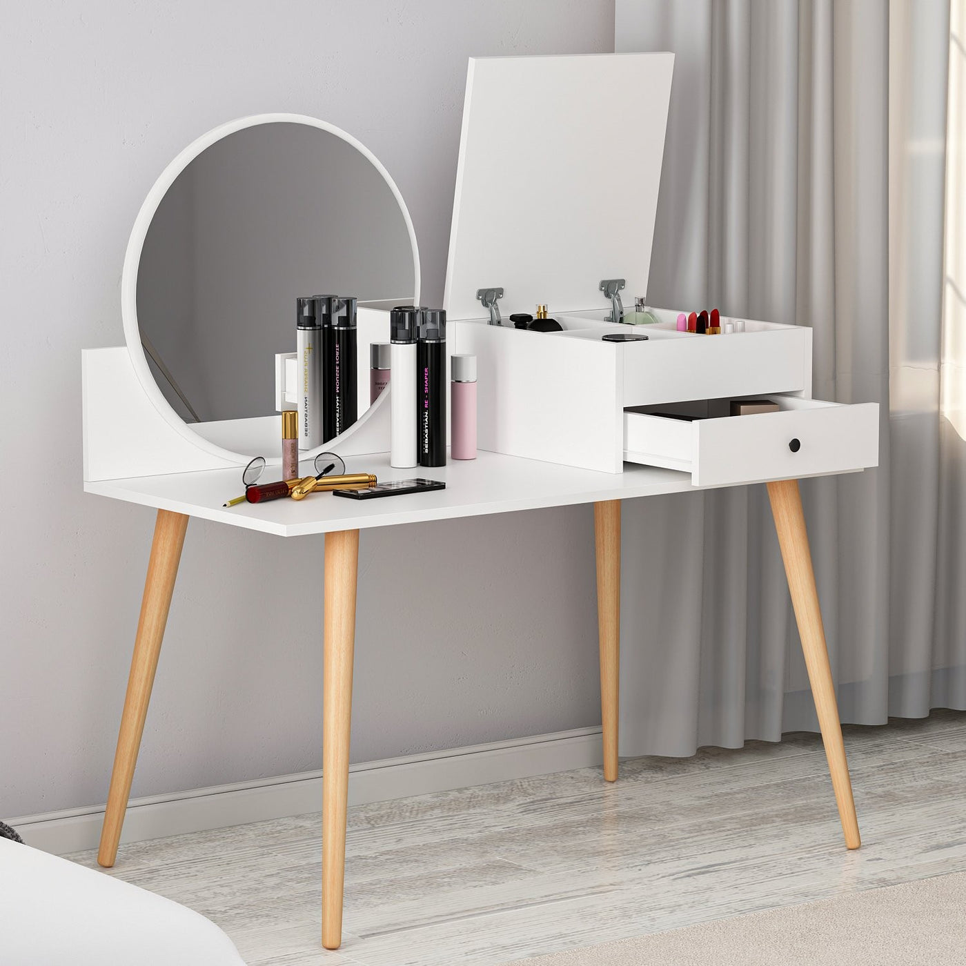 Avec sa couleur unie et son design moderne, notre table de maquillage ajoute une touche d'élégance et de sophistication à n'importe quelle pièce. La couleur blanche élégante complète n'importe quel décor existant, ce qui en fait un ajout harmonieux à votre maison.