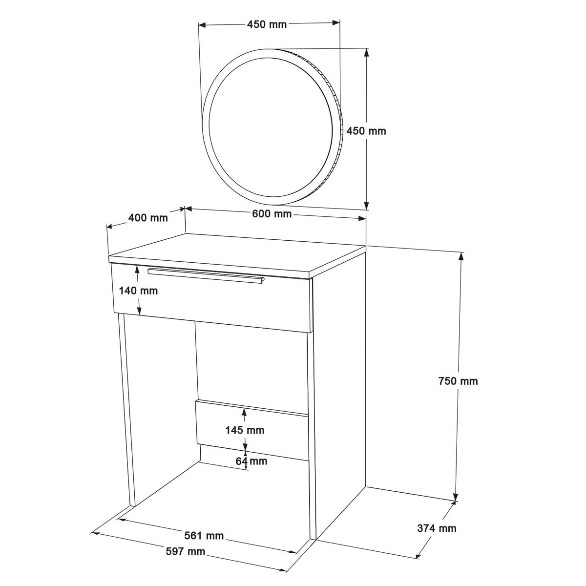 Nous savons que l'espace est une denrée précieuse dans chaque foyer. C'est pourquoi notre table de maquillage a été conçue avec soin et présente des dimensions compactes de 59,7 cm de largeur, 75 cm de hauteur et 37,4 cm de profondeur. Elle s'intègre parfaitement dans n'importe quelle pièce, ce qui la rend idéale pour les appartements, les chambres à coucher ou même les dressings.