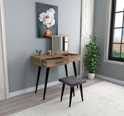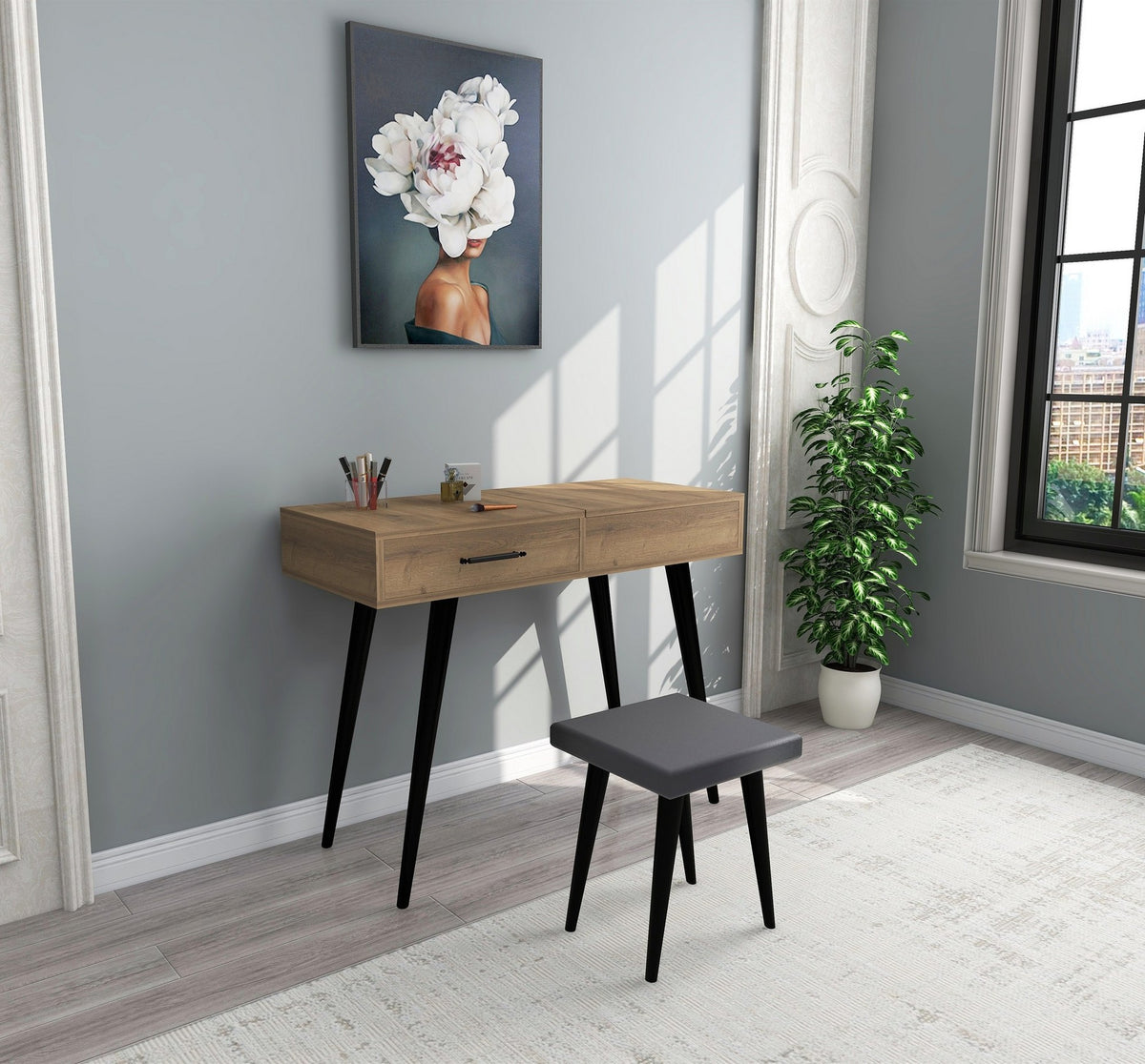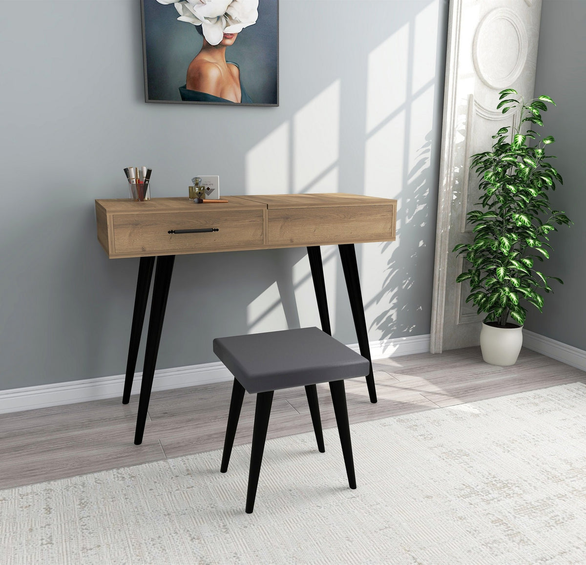 Dotée d'élégants pieds en bois et d'un design épuré, notre table de maquillage s'intègre sans effort dans n'importe quel style d'intérieur, qu'il soit moderne, contemporain ou classique. La combinaison des couleurs hitit et noir ajoute une touche de sophistication et d'élégance à votre espace, en faisant un point focal de votre pièce.