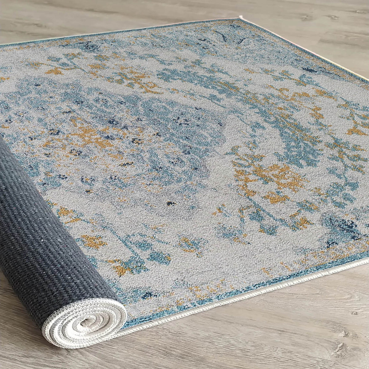 Améliorez l'ambiance de votre espace de vie avec notre superbe tapis bleu. Fabriqué avec le plus grand soin et la plus grande précision, ce tapis est conçu pour captiver vos sens et élever votre décoration intérieure à de nouveaux sommets.