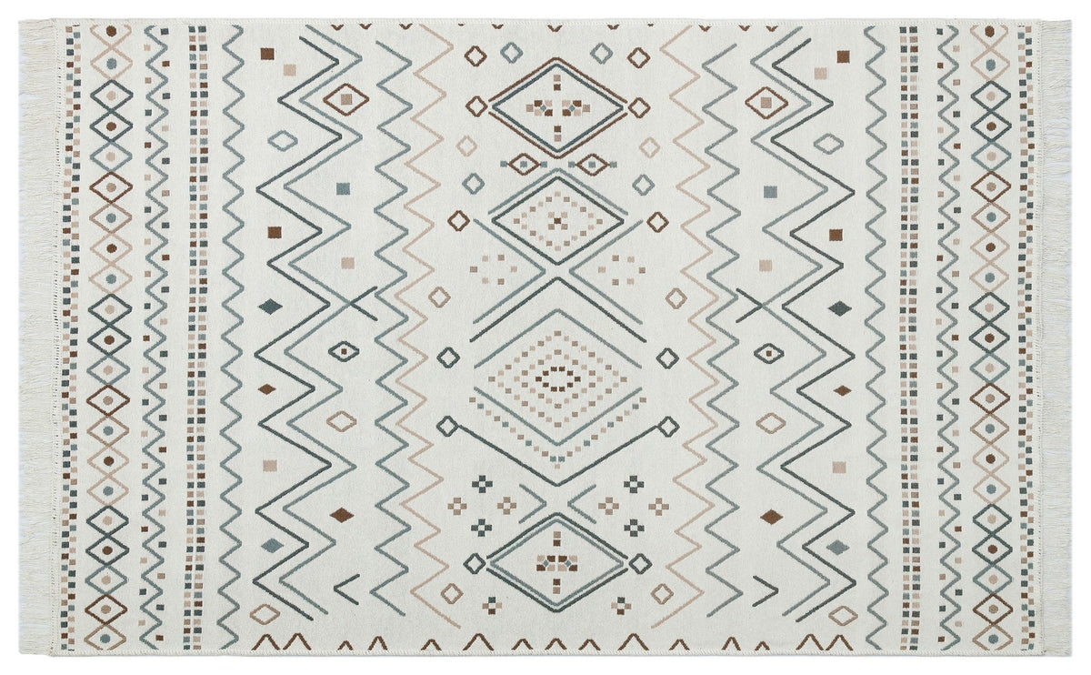 Nous comprenons l'importance de la commodité dans votre vie active. C'est pourquoi notre tapis beige et bleu est lavable en machine à 30 °C, ce qui vous permet de le garder propre et frais sans effort. Dites adieu au nettoyage professionnel et profitez de la commodité de l'entretien de votre tapis à la maison.