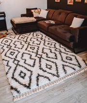 La combinaison des couleurs blanc et anthracite crée un contraste étonnant qui ajoute une touche de sophistication à n'importe quel intérieur. Les bords frangés ajoutent une touche d'élégance supplémentaire, faisant de ce tapis une véritable pièce d'apparat qui rehaussera la beauté de votre intérieur.