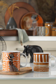 Savourez vos boissons chaudes préférées dans ce superbe mug qui respire l'élégance et le charme. Ses teintes orange et marron vibrantes, associées à de délicats accents blancs, créent une expérience visuelle captivante qui vous remontera le moral à chaque gorgée.