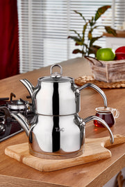 Grâce à son design unique et à sa fabrication impeccable, notre ensemble de théières garantit une infusion parfaite. La théière supérieure, mesurant 9 x 9 x 9 cm et d'une capacité de 0,75 lt, et la théière inférieure, mesurant 10,5 x 10,5 x 10,5 cm et d'une capacité de 1,25 lt, fonctionnent en parfaite harmonie pour offrir une tasse de thé parfaite à chaque fois.