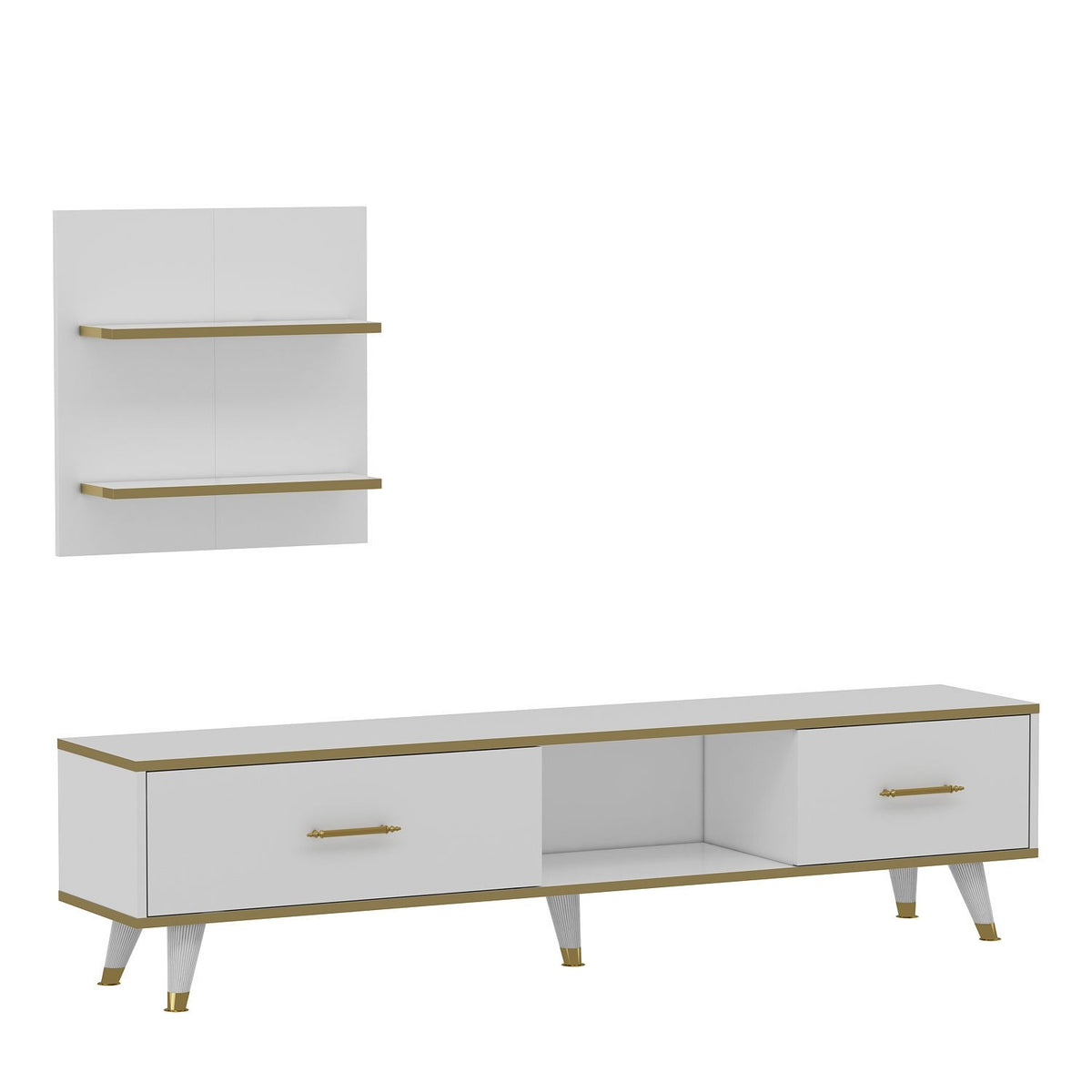 L'association des couleurs blanc et or confère à ce meuble TV un aspect sophistiqué et luxueux. Il se fond sans effort dans n'importe quel décor intérieur, ce qui en fait un choix polyvalent pour votre maison. Les pieds en plastique assurent non seulement la stabilité mais ajoutent également une touche contemporaine à l'ensemble du design.