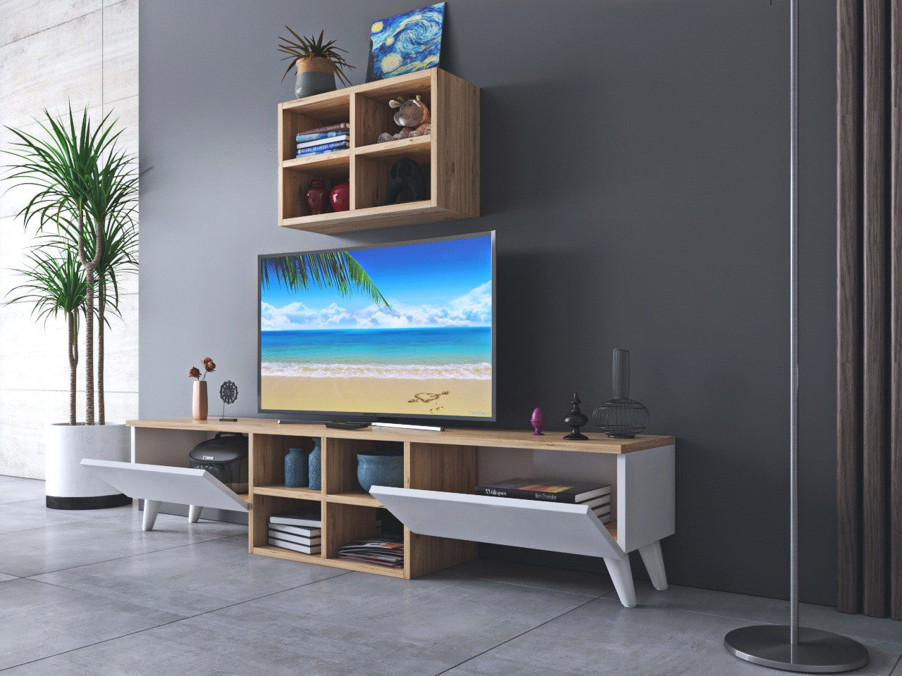 Notre meuble TV présente un design épuré et moderne, inspiré par l'élégance intemporelle des intérieurs scandinaves. La combinaison des couleurs noyer et blanc crée une atmosphère harmonieuse et apaisante, ce qui en fait le complément idéal de toute maison contemporaine.