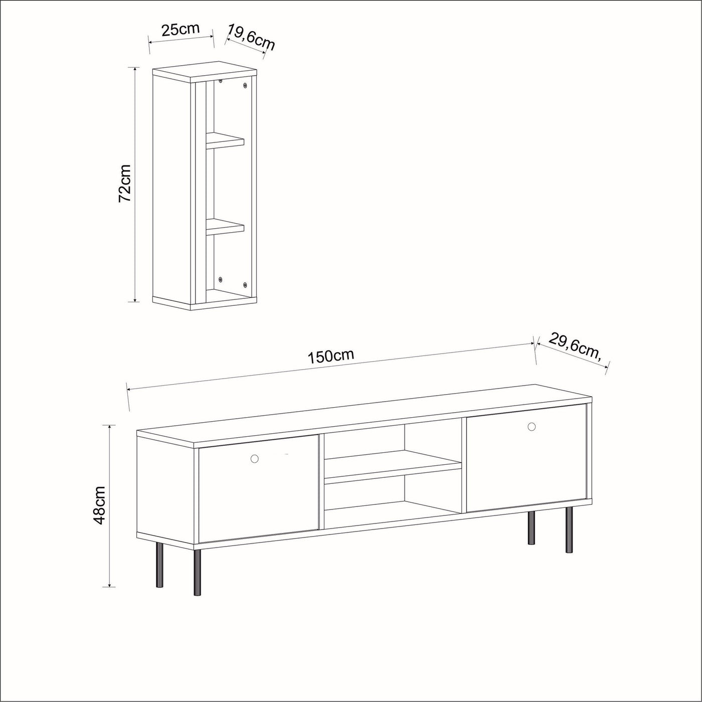 Carte de particules à revêtement en mélamine 100%Épaisseur: 18 mmLargeur: 150 cm Hauteur: 48 cm de profondeur: 29,6 cmÉtagère; Largeur: 25 cm Hauteur: 72 cm de profondeur: 19,6 cm