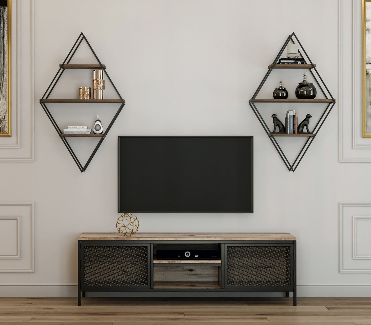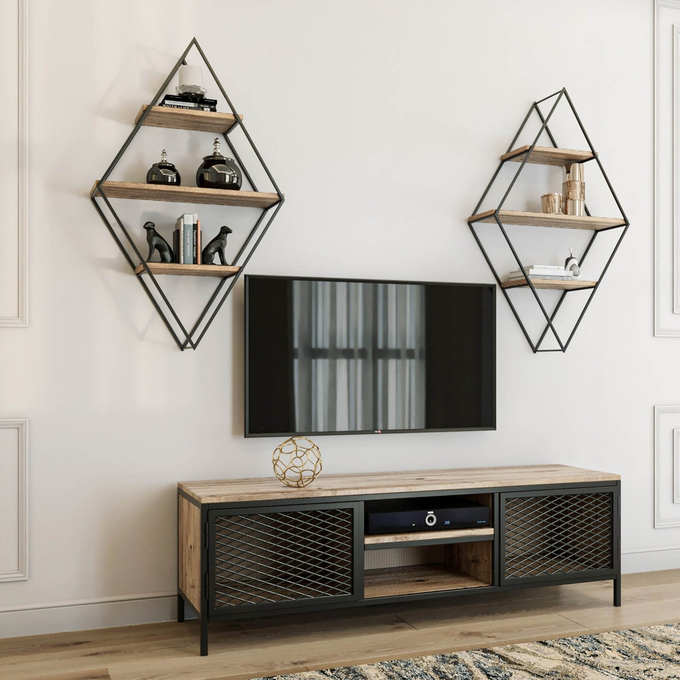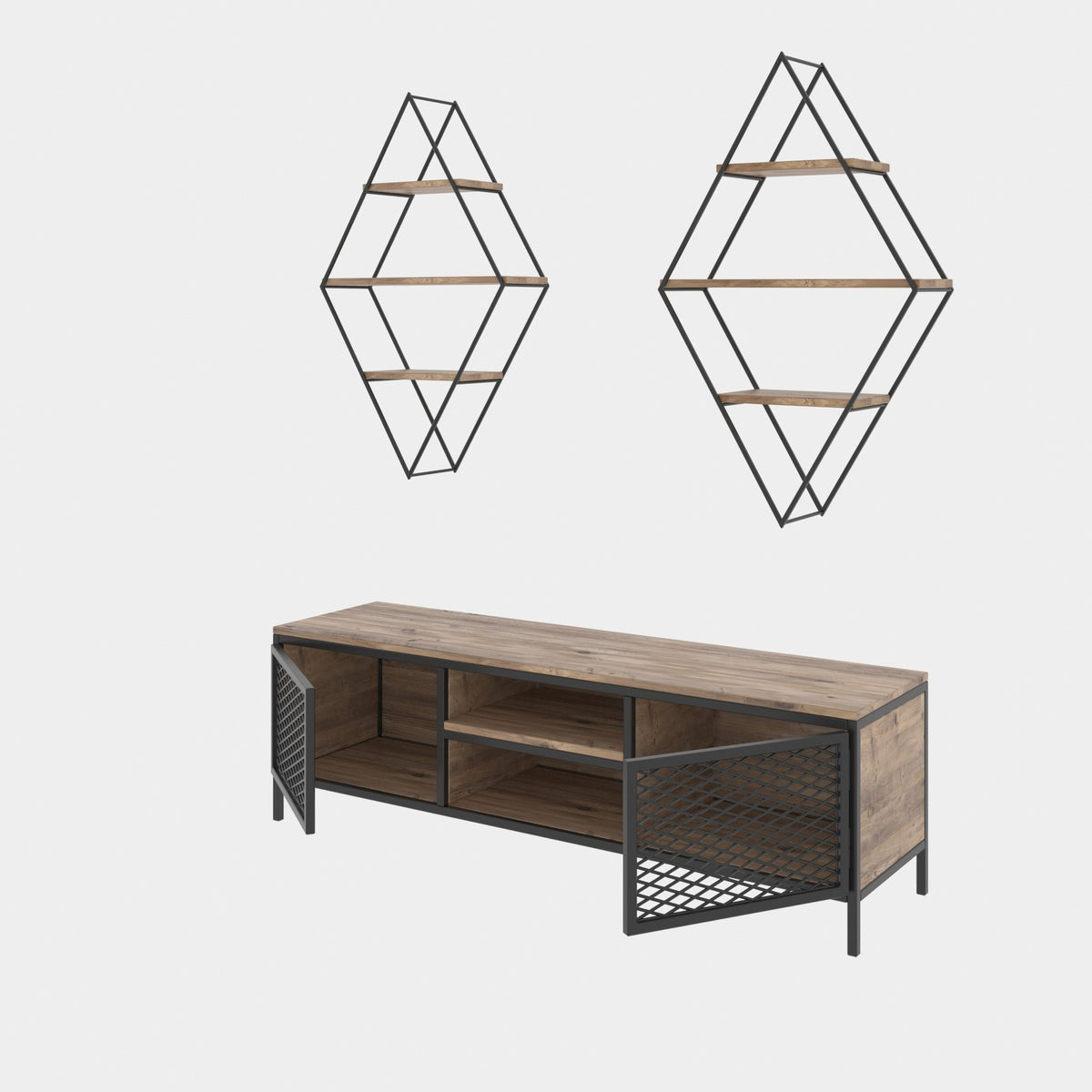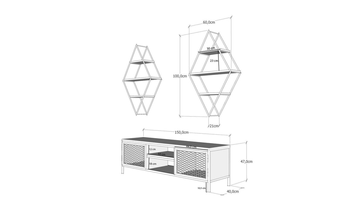 Carte de particules à revêtement en mélamine 100%Cadre: 100% métalTV de l'unité Taille: Largeur: 150 cm Hauteur: 47 cm de profondeur: 40 cm (1 pièce)Taille du plateau moyen: Largeur: 50 cm Hauteur: 18 cm de profondeur: 40 cmHauteur de la jambe: 10,5 cmTaille de l'étagère: Largeur: 60 cm Hauteur: 100 cm de profondeur: 21 cm (2 pièces)Largeur de l'étagère supérieure: 30 cmHauteur de l'étagère: 23 cmDe nombreuses étagèresPeut être fixé au mur