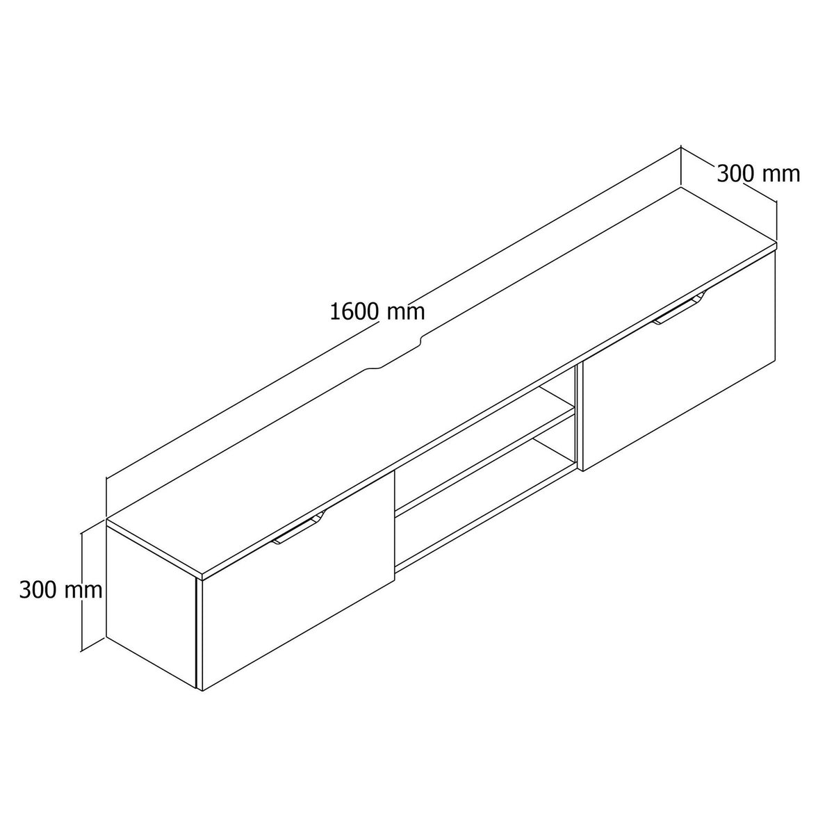 Mesurant 160 cm de largeur, 30 cm de hauteur et 30 cm de profondeur, ce meuble TV offre suffisamment d'espace pour tous vos appareils de divertissement. Son design élégant et compact lui permet de s'intégrer parfaitement dans n'importe quelle pièce, ce qui le rend parfait pour les petits et les grands espaces. Dites adieu au désordre et bonjour à un espace de vie propre et organisé !