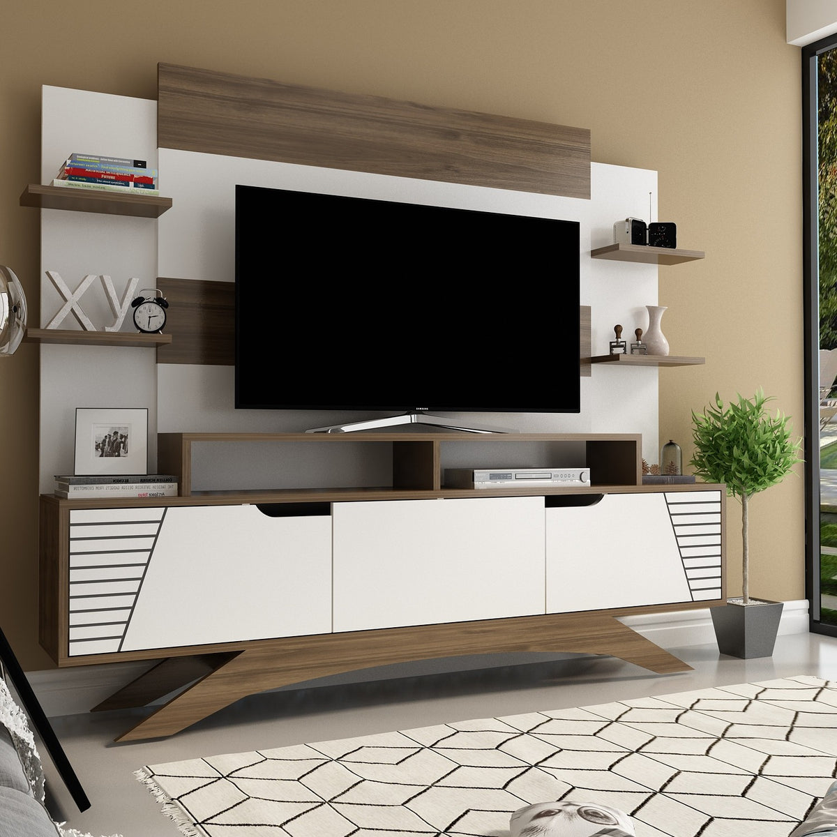 Avec son mélange parfait de couleurs noyer et blanc, ce meuble TV est un véritable régal pour les yeux. Les couleurs contrastées ajoutent une touche contemporaine à votre espace de vie, ce qui en fait le point focal parfait pour votre maison.