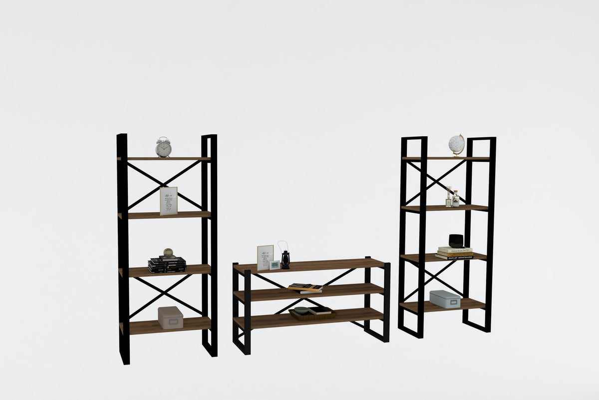 Carte de particules à revêtement en mélamine 100%Épaisseur: 30 mmArmature en métalTV de l'unité Taille: Largeur: 120 cm Hauteur: 58,5 cm de profondeur: 32 cmBidacte Taille: Largeur: 66 cm Hauteur: 150 cm Profondeur: 32 cm (2 pièces)De nombreuses étagèresPeut être fixé au murStockage supplémentaire