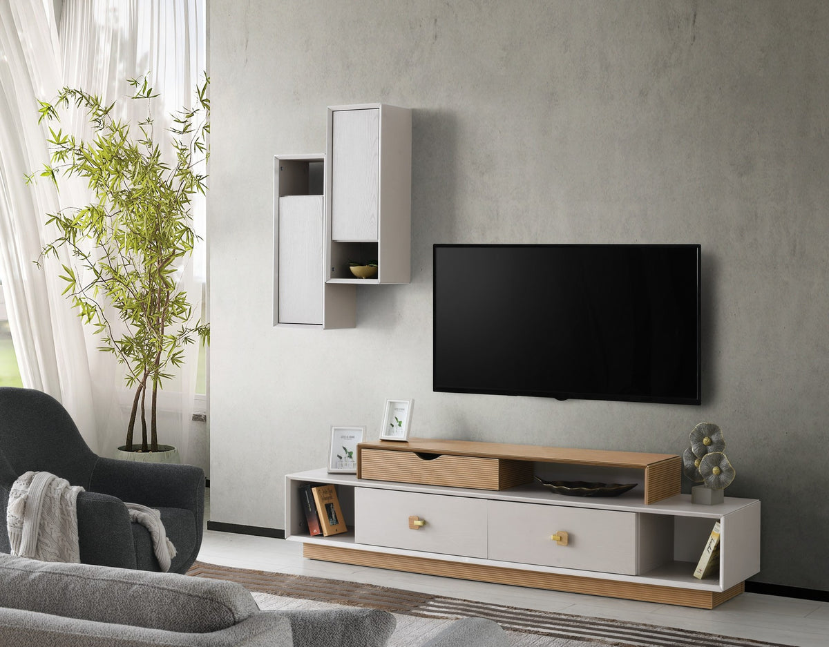 Voici notre superbe meuble TV qui va révolutionner la façon dont vous profitez de vos émissions et films préférés. Avec son design élégant et sa fabrication impeccable, ce meuble TV est le complément parfait de tout espace de vie moderne.