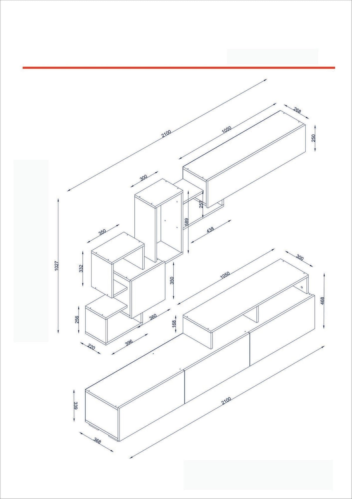 - Dimensions du meuble TV : Largeur : 210 cm, Hauteur : 46.8 cm, Profondeur : 36.8 cm