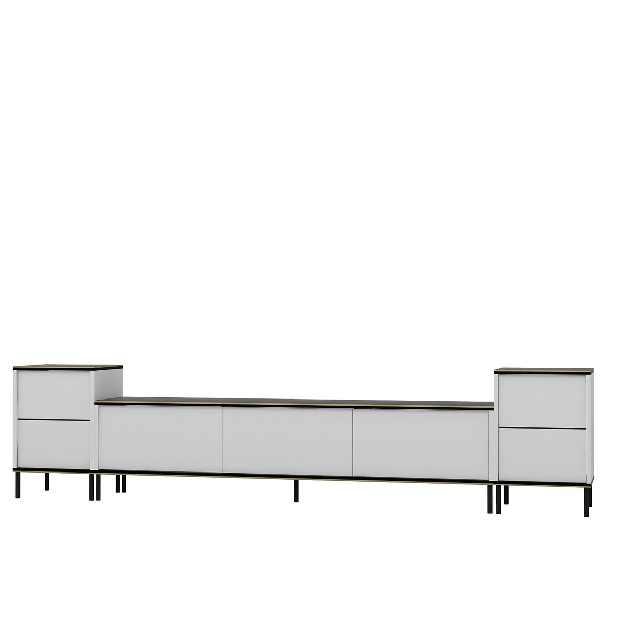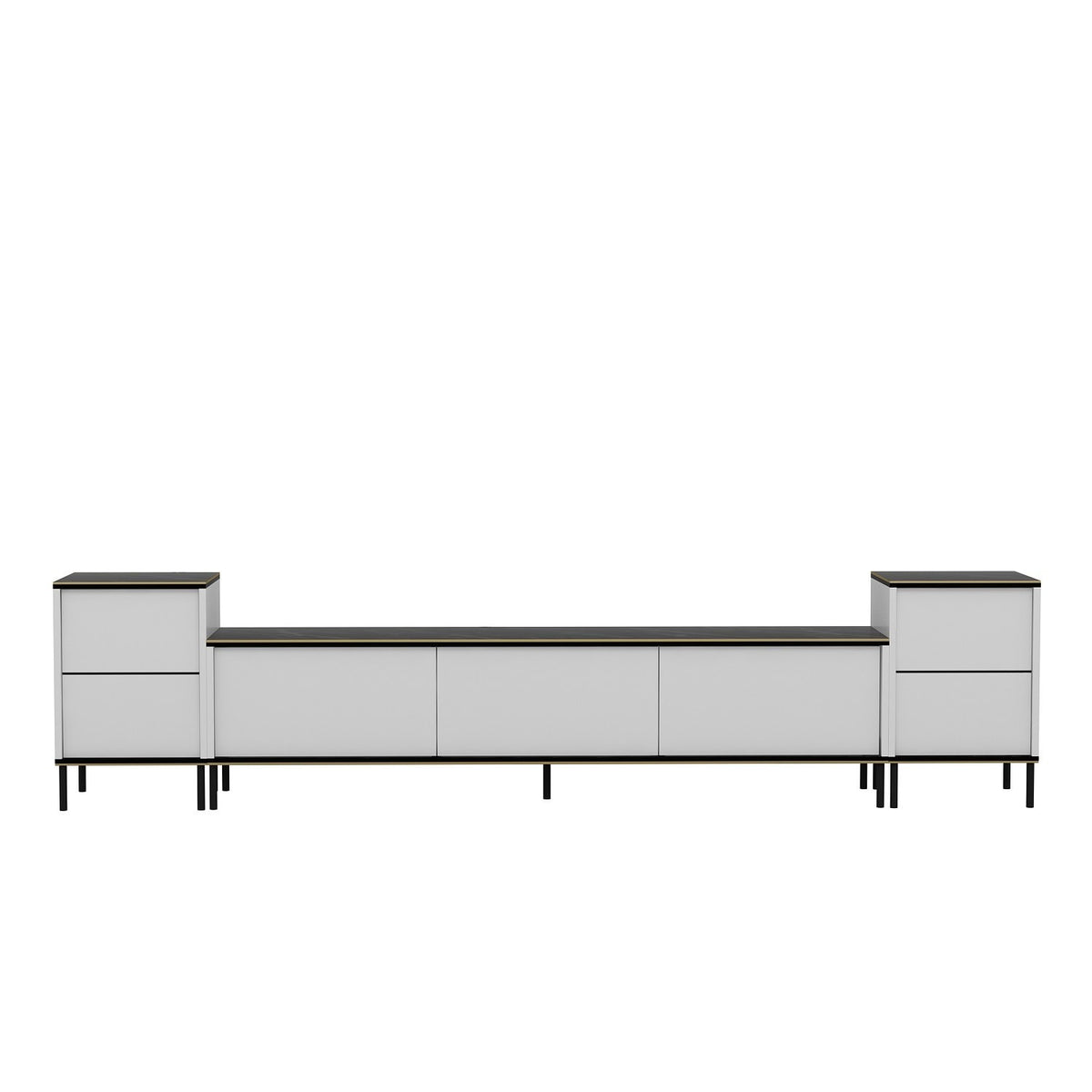 Grâce à son design spacieux et à ses nombreuses étagères, ce meuble TV offre un vaste espace de rangement pour tous vos accessoires de divertissement. Des DVD aux consoles de jeu, tout est organisé et facilement accessible. Les tables de nuit ajoutent une touche de commodité supplémentaire, parfaite pour ranger les télécommandes ou les magazines.