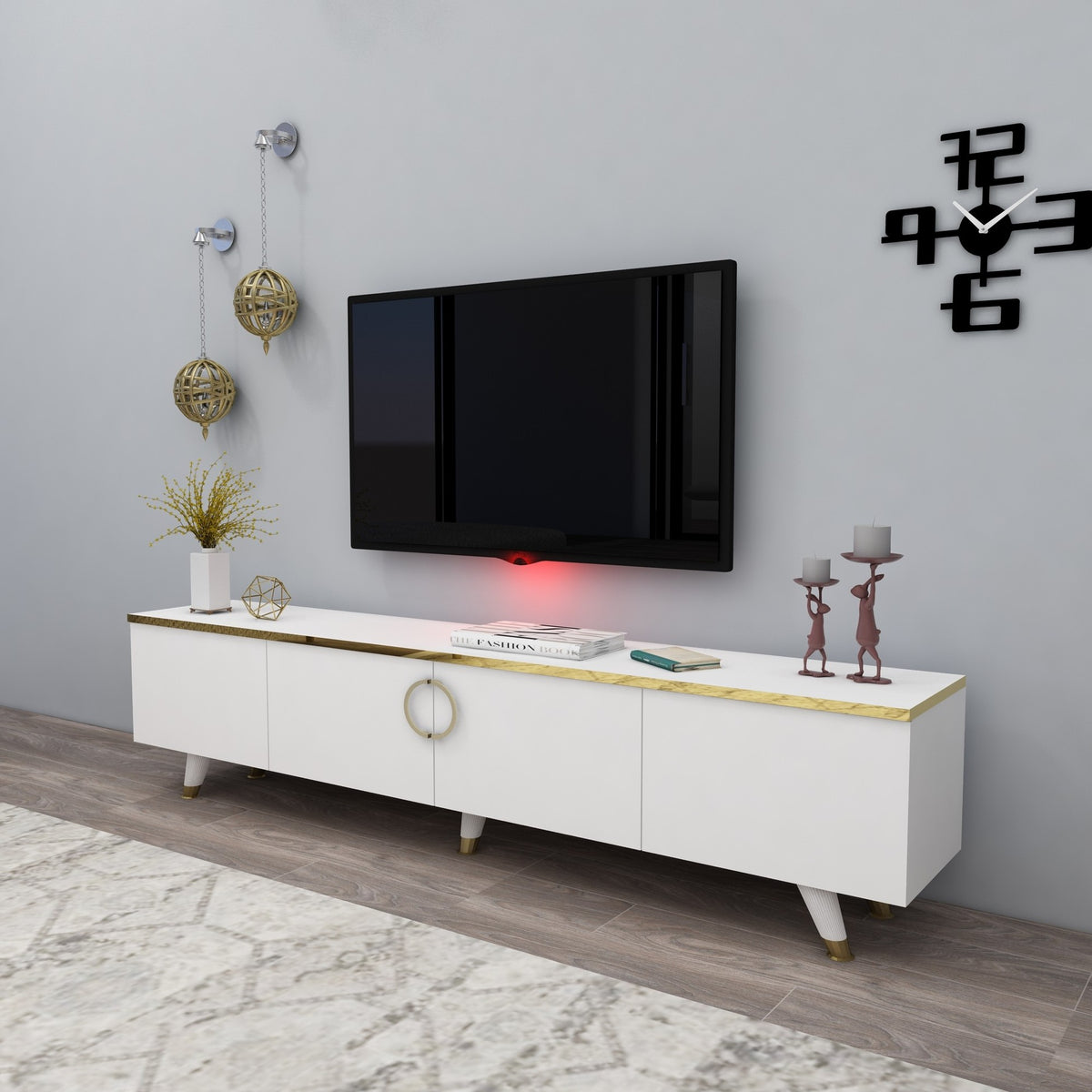 L'association des couleurs blanc et or de notre meuble TV dégage une impression d'opulence et de luxe, transformant instantanément votre salon en un havre de paix glamour. Le design épuré et la finition moderne en font un complément parfait à tout décor contemporain ou traditionnel.