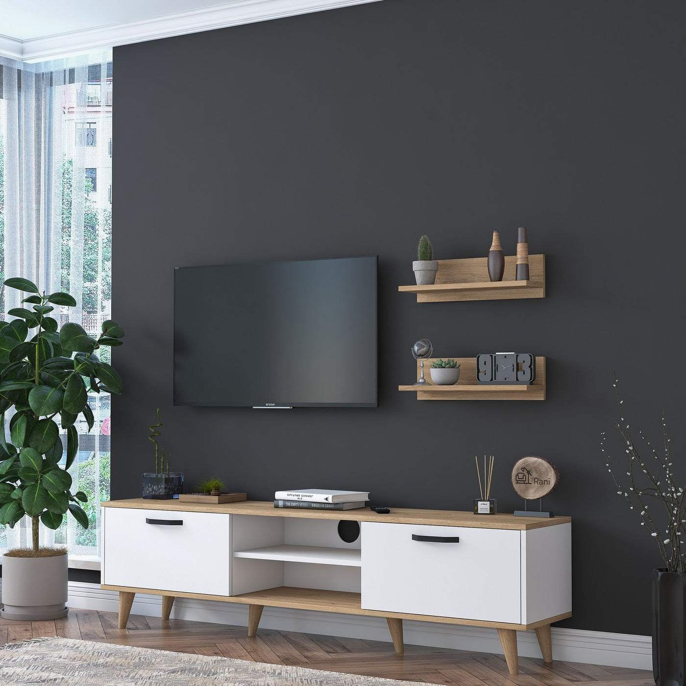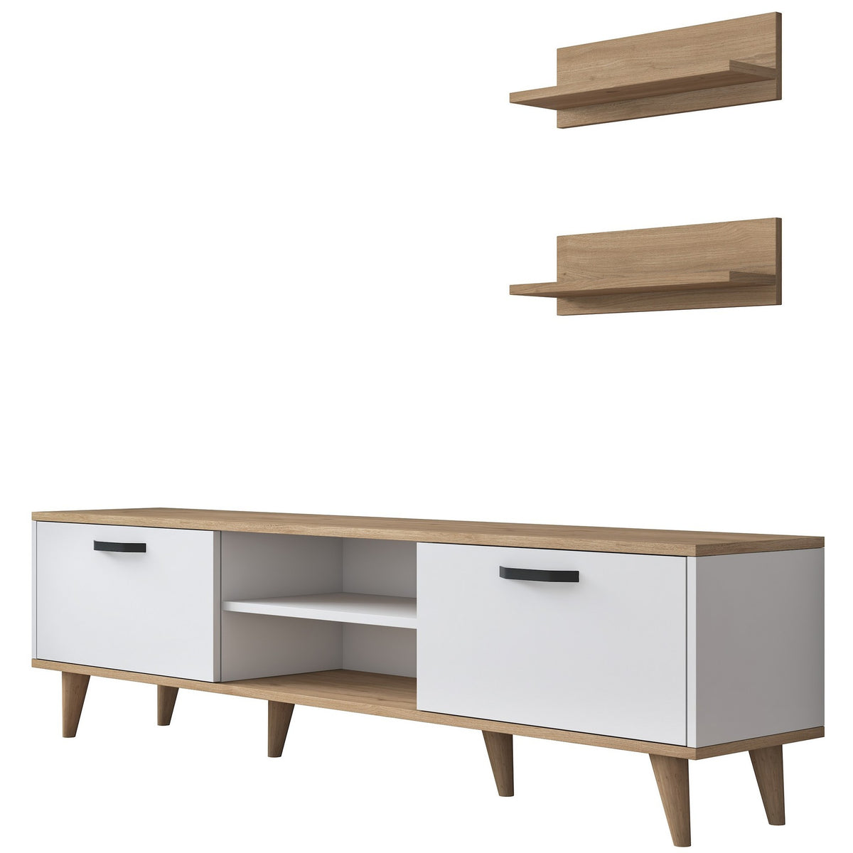 Carte de particules à revêtement en mélamine 100%Épaisseur: 18 mmTV Seck: Largeur: 180 cm Hauteur: 48,6 cm profondeur: 35 cmÉtagère murale: Largeur: 60 cm Hauteur: 15 cm de profondeur: 15 cm (2 pièces)Taille de la poitrine du milieu: Largeur: 56,5 cm Hauteur: 29,7 cmDe nombreuses étagèresPeut être fixé au murStockage supplémentaire