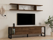 Doté de pieds en métal, ce meuble TV dégage un charme industriel qui s'harmonise avec tous les styles d'intérieur. La couleur noyer ajoute une touche rustique, créant une atmosphère chaleureuse et accueillante dans votre espace de vie.